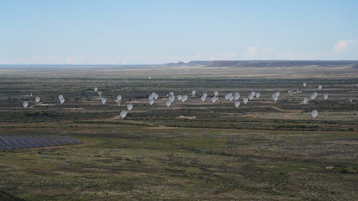 Le site du télescope SKA-Mid et ses premières antennes paraboliques,premières d'une longue série,se cachent dans un site isolé dans le désert du Karoo,composé de roche noire et marron à 1 000 mètres d'altitude,en Afrique du Sud. "On construit un radiotélescope pour observer de quoi l'univers est composé,se réjouit Lindsay Magnus,le directeur du site. On veut voir comment l'univers s'est formé,et comment il évolue. C'est un télescope d'une taille et d'une précision jamais vues auparavant."